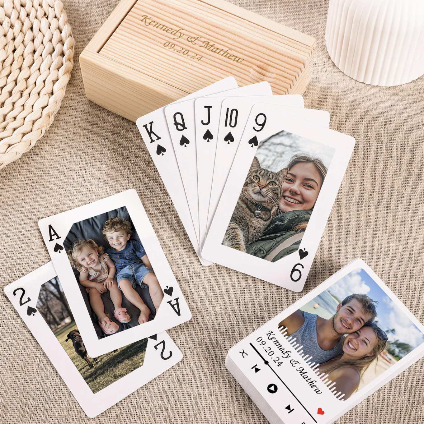 Transform your card game experience with a deck that’s uniquely yours. Featuring custom photos, each card tells a personal story, making every game a one-of-a-kind experience. Perfect for gifts, special events, or simply adding a personal touch to your favorite games.